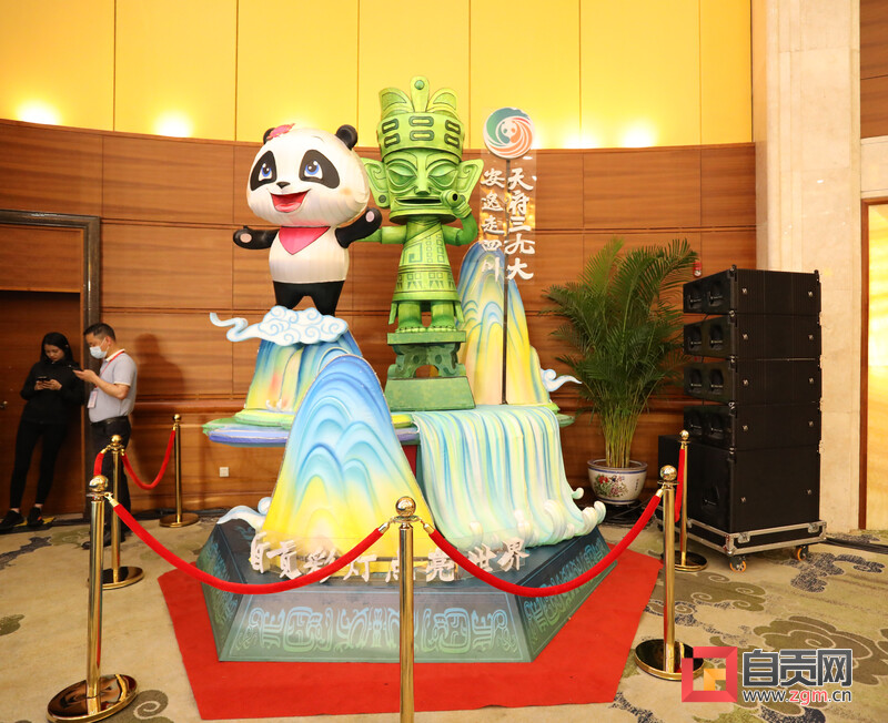 活動現(xiàn)場入口處設(shè)有特色“燈門”,會場內(nèi)部擺放著兩排長9米的宮燈墻,懸掛著66個燈籠,讓人仿佛置身于自貢·中華彩燈大世界。全新設(shè)計(jì)燈組以四川文旅形象大使熊貓“安逸”為創(chuàng)作主體,融入“三星堆”特色元素,以“祥云流水”為點(diǎn)綴。此外,現(xiàn)場還展示了包括中華瓷龍、福燈、金雕、白孔雀、朝天吼等在內(nèi)的彩燈文創(chuàng)產(chǎn)品,與震撼精美的大型燈組一起,全面詮釋自貢彩燈產(chǎn)業(yè)發(fā)展的新高度。